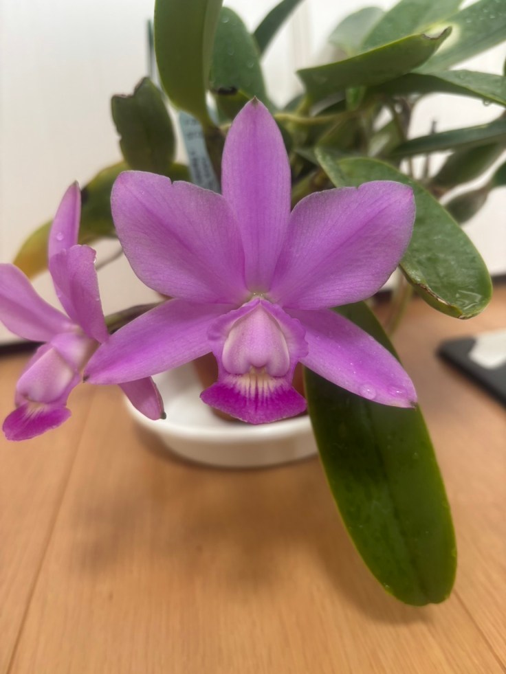 C. walkeriana rubra ‘Super Rubra’x flamea ‘Ruby Angel’ AM/AJOS が咲きました。とても花形が良く好みの花となりました。walkerianaraらしくいい香りでそこも好みのポイントです。